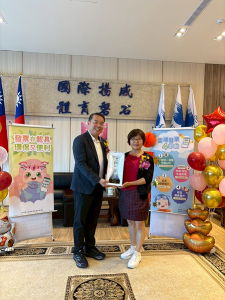 財政部北區國稅局為表彰營業人納稅榮譽及配合政府政策使用電子發票,本(114)年度評選出轄內使用統一發票績優營業人85家及電子發票績優營業人48家,共計133家營業人。國立體育大學榮獲「114年度使用統一發票績優營業人」肯定,獲獎率僅萬分之2.2,更是唯一獲獎的國立大學,殊榮難得。 為慶賀績優營業人獲獎,財政部北區國稅局桃園分局於114年9月8日(星期一)上午10時假本校舉行公開表揚,由戴月琳分局長親自頒獎,並由邱炳坤校長代表本校接受表揚。表揚會後,分局長進行「雲端綠生活 地球展色