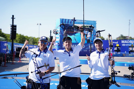賀!本校射箭隊參加2025世界盃射箭賽第四站-馬德里 複合弓女子團體金牌佳績 !!